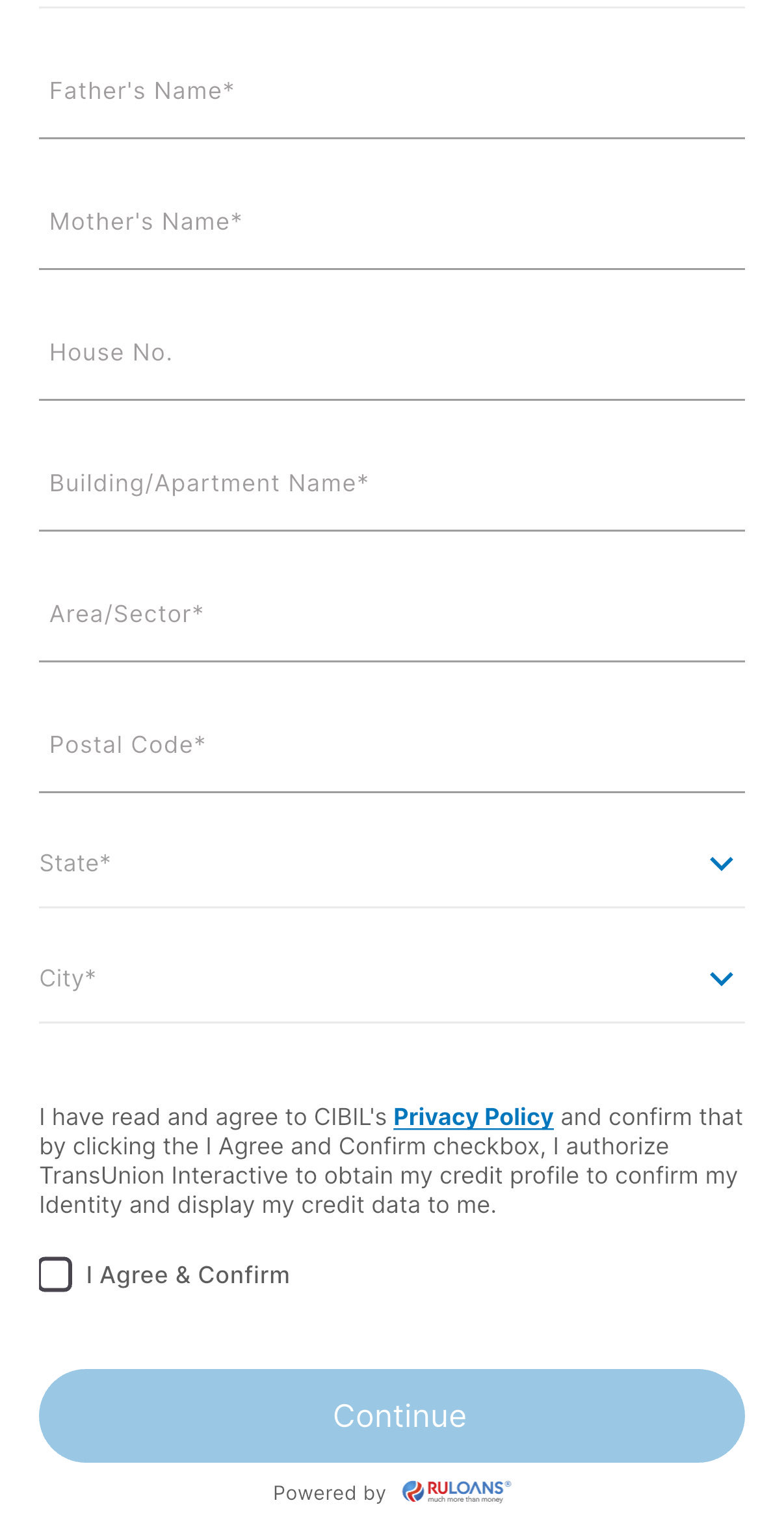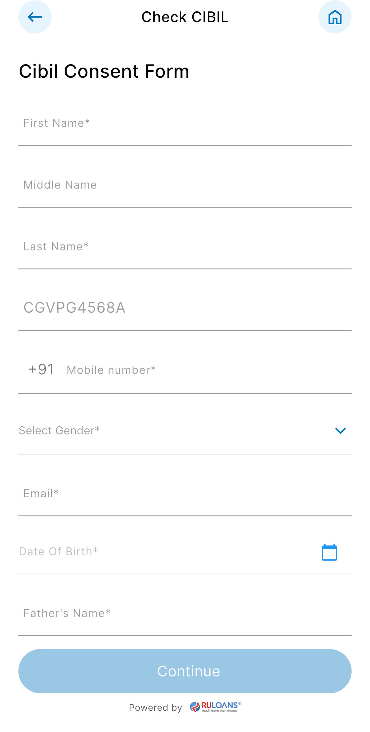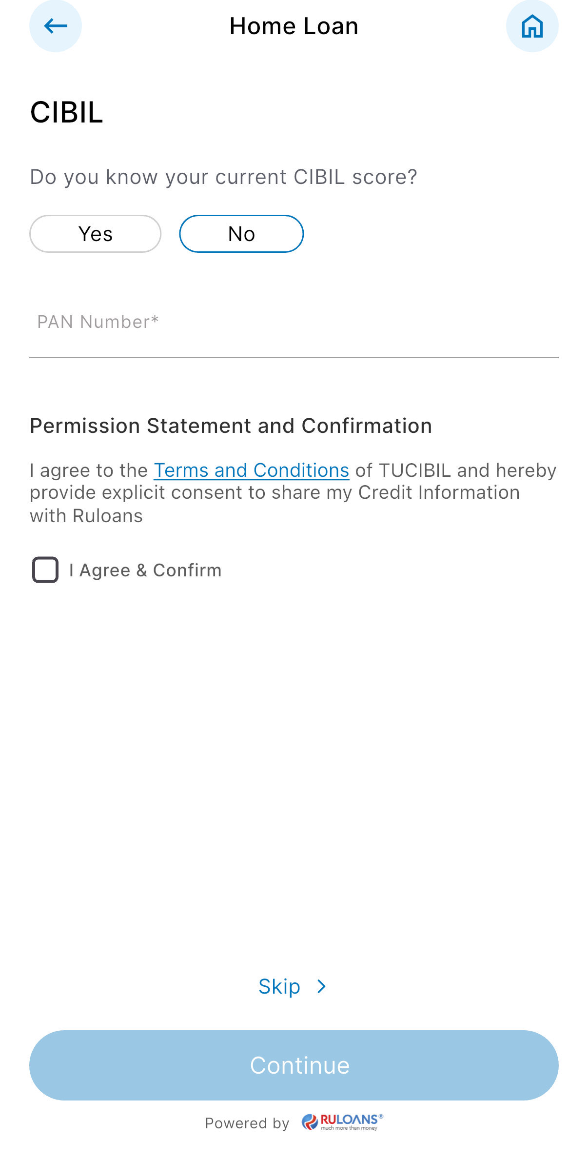 Required to verify your credit score and match loan offers. - Tap Continue.