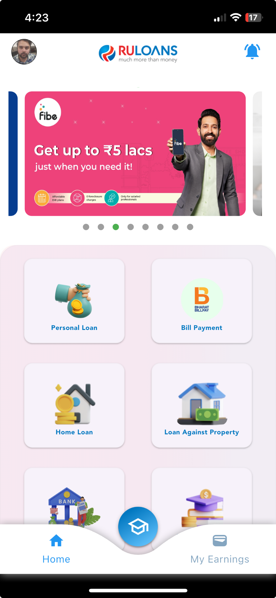 After successful login, you will land on the Dashboard.- Quick Access Links: Links to personal loans, home loans, and other products.