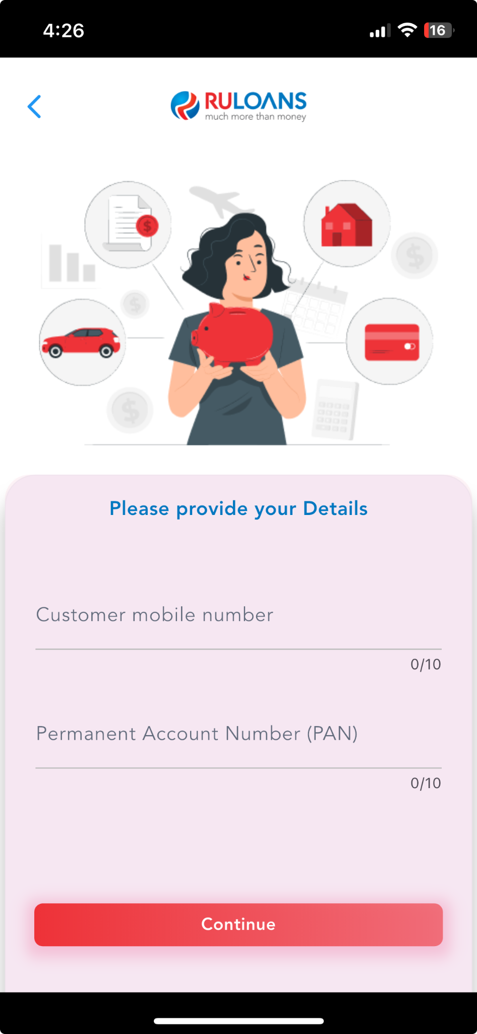 Click “Continue” on the RULOANS platform. You will be redirected to the lender’s website to complete the application.