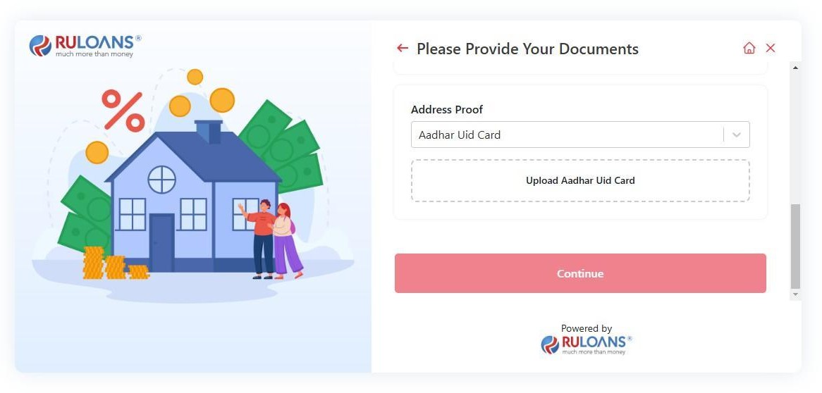 - Action Button: Continue - Once all fields are filled, the user proceeds to the next step.