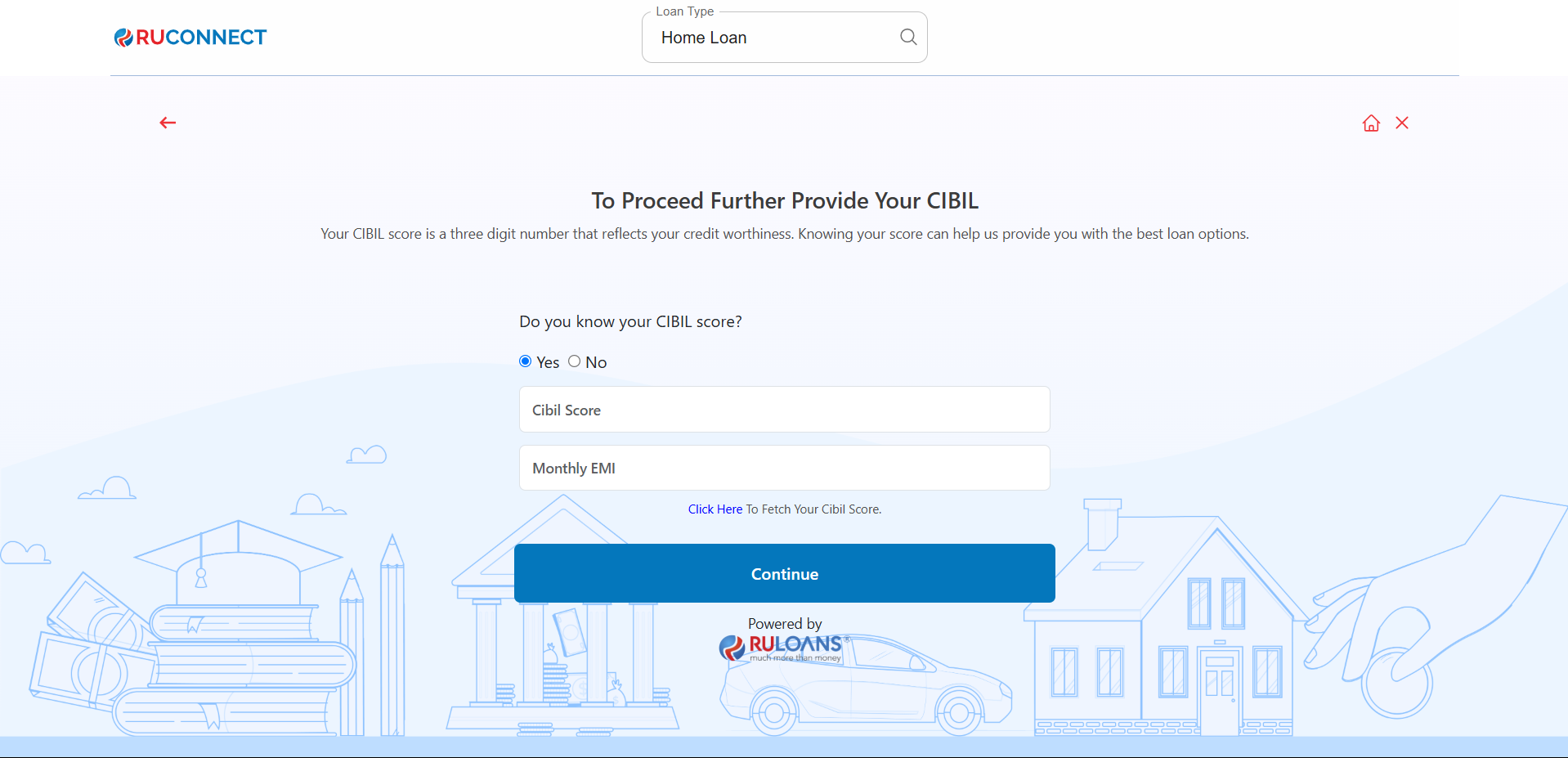 - CIBIL Score: Enter your 3-digit credit score (e.g., 750).