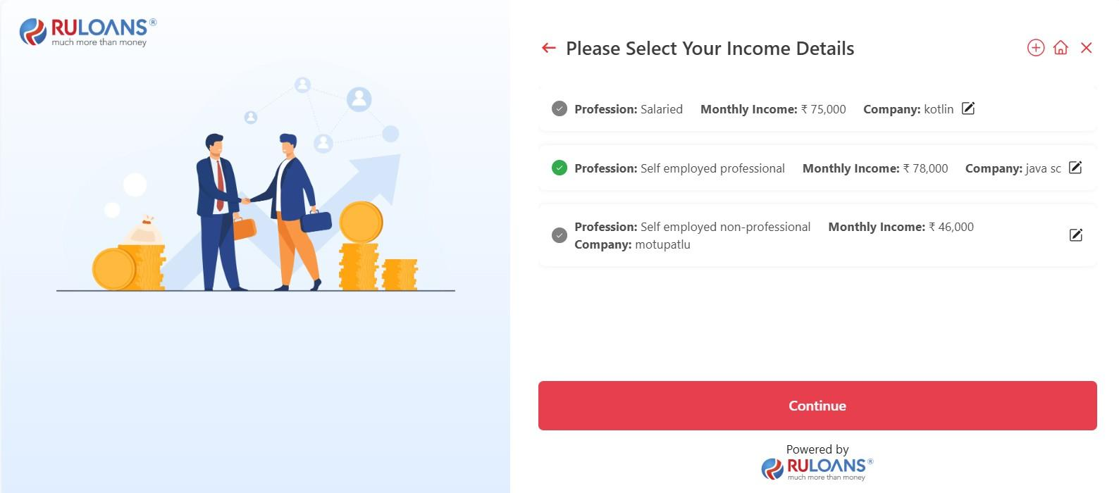 - Income Type: Choose between options like salaried, self-employed, etc.
