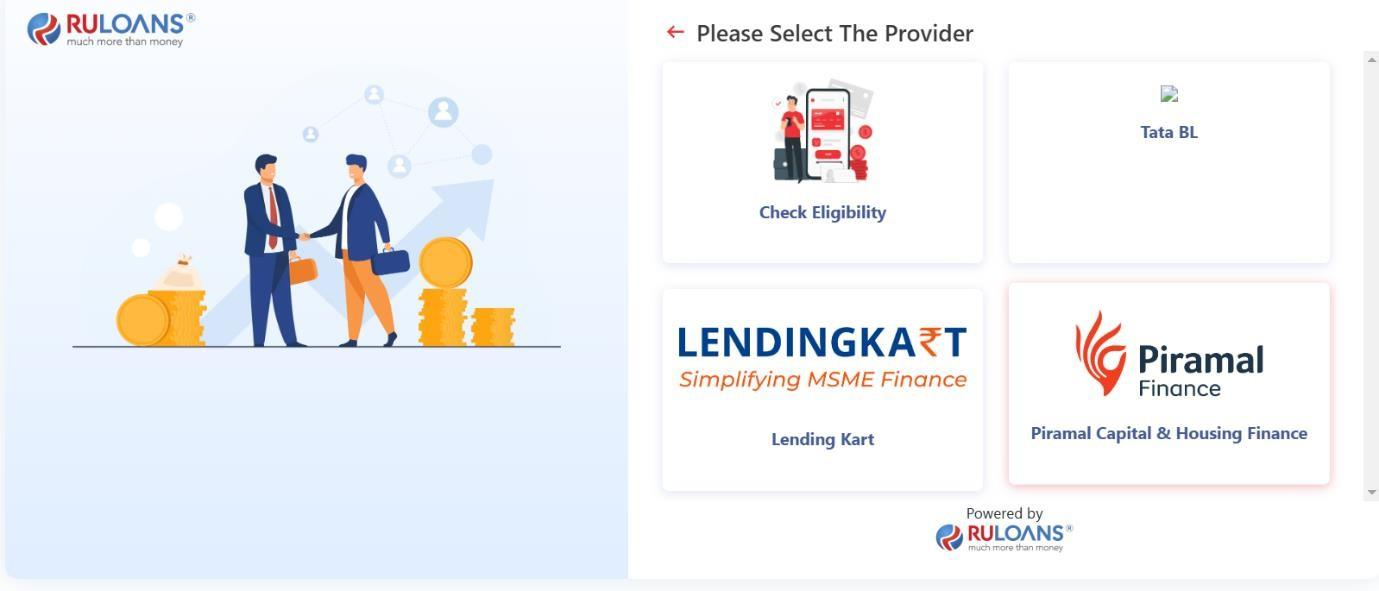 - From the options, select the desired loan provider to proceed with the application.