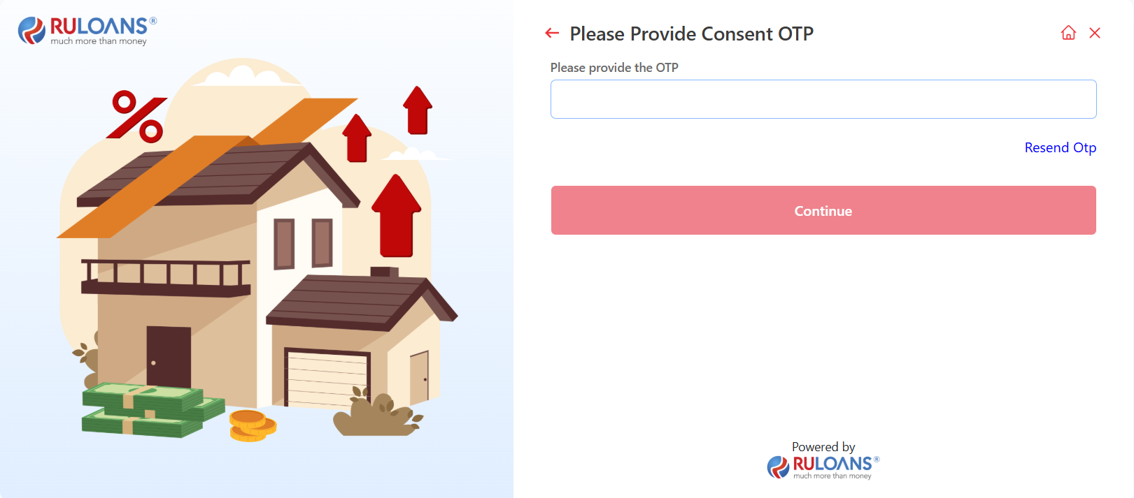 This step involves the borrower providing consent OTP for ICIC Home Loan. The borrower must input the OTP recieved on the applicant’s mobile number.