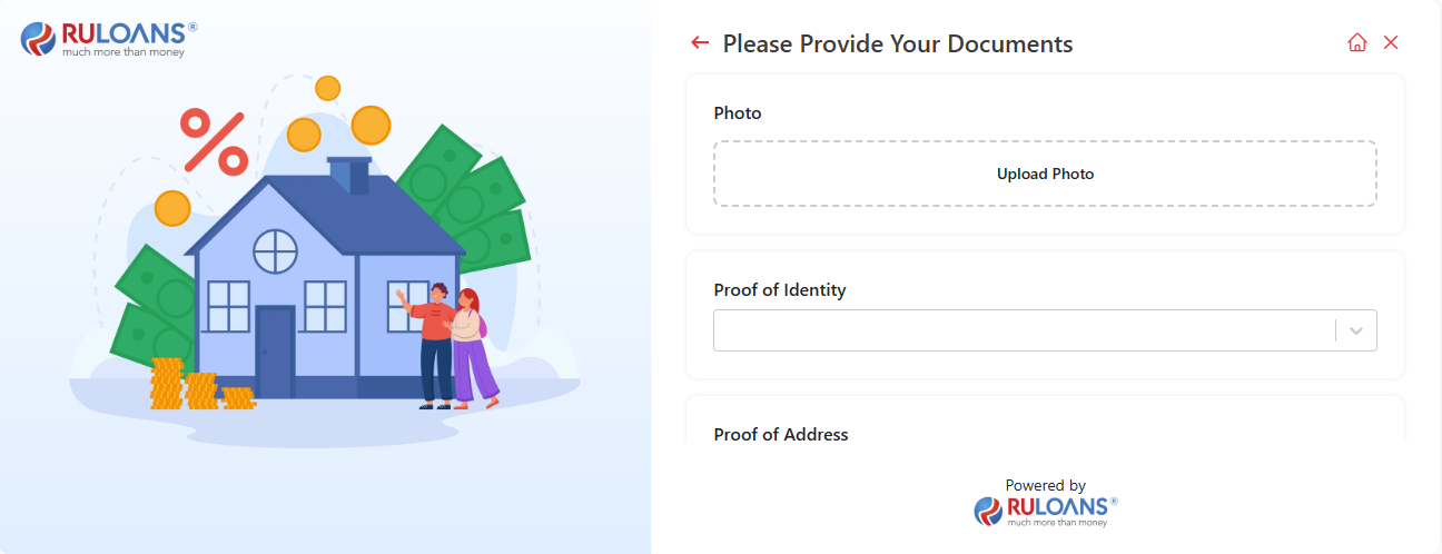 In the loan application flow of the assisted journey, Step 19 focuses on the document submission process. This step involves uploading essential KYC and conditional documents for verification. Details:- Photo