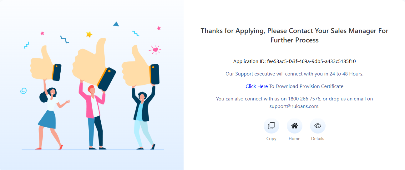 - Support Information: The user is informed that a support executive will contact them within 24 to 48 hours.