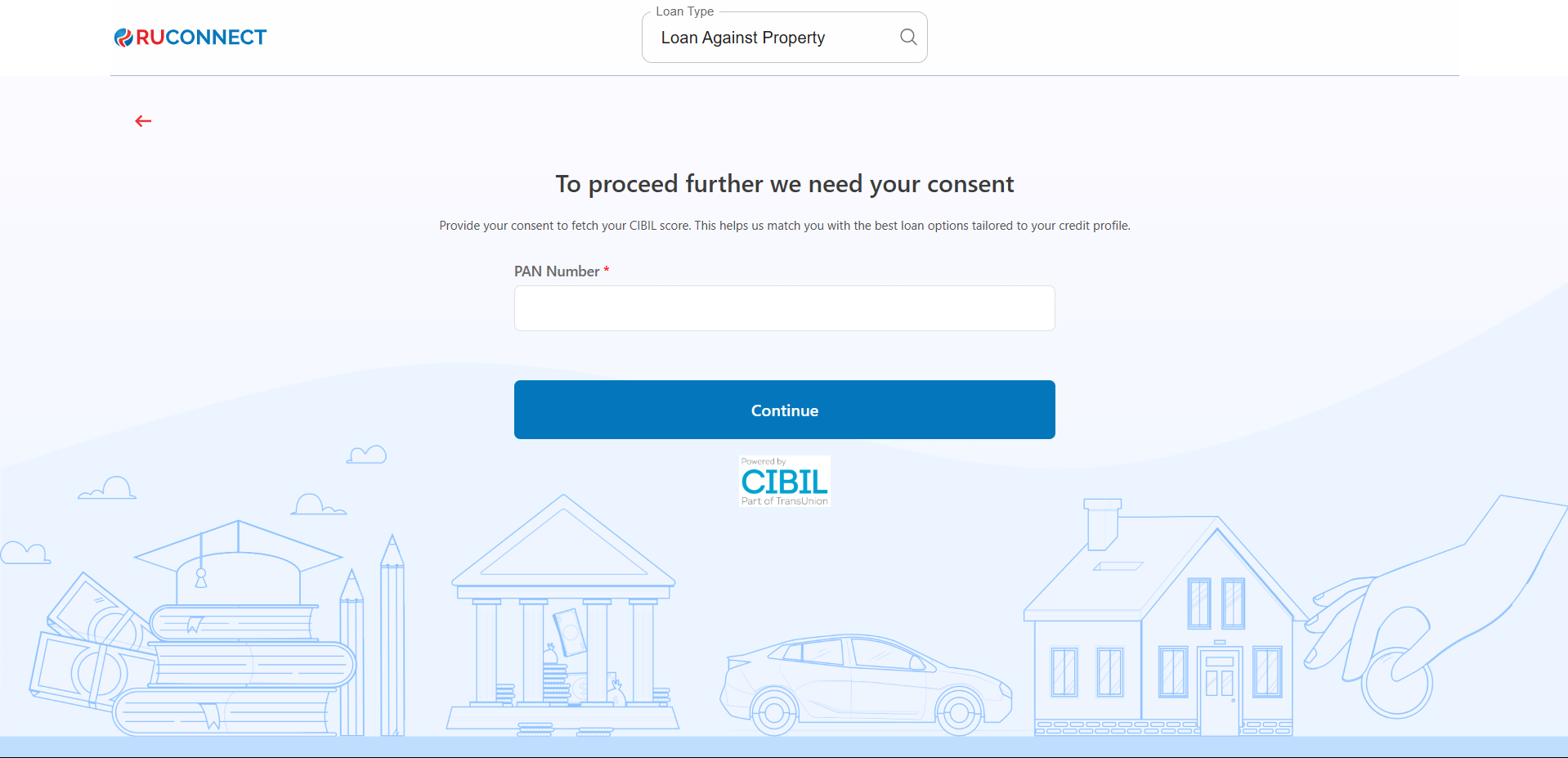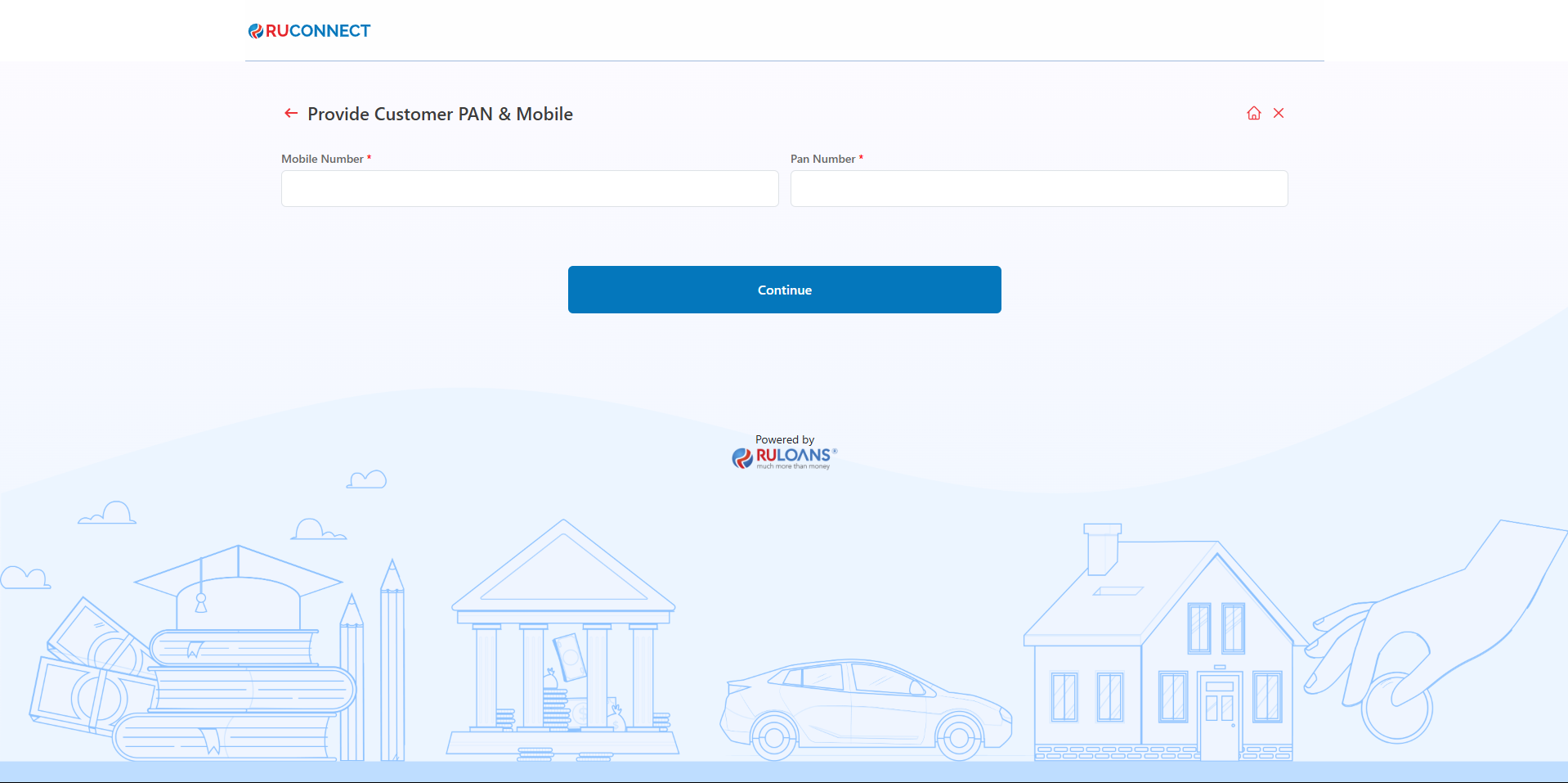 This screen is used to collect the customer’s mobile number and PAN (Permanent Account Number), which are essential for identity verification and loan processing.