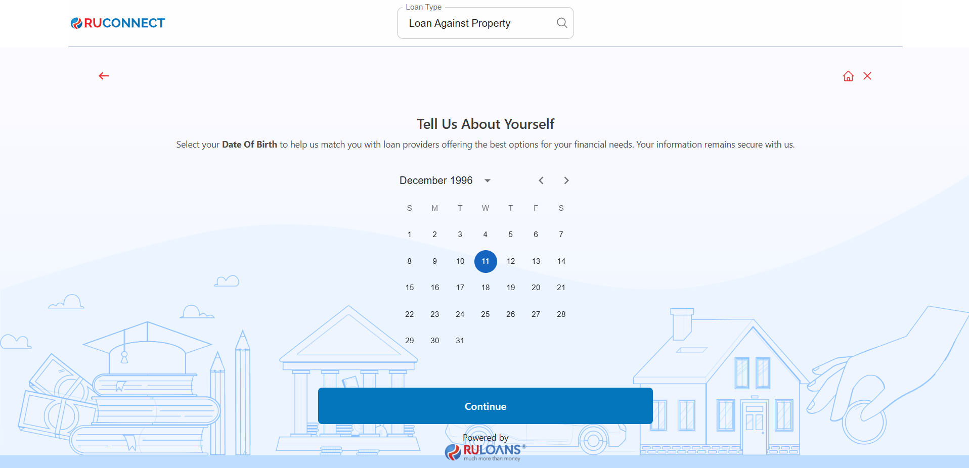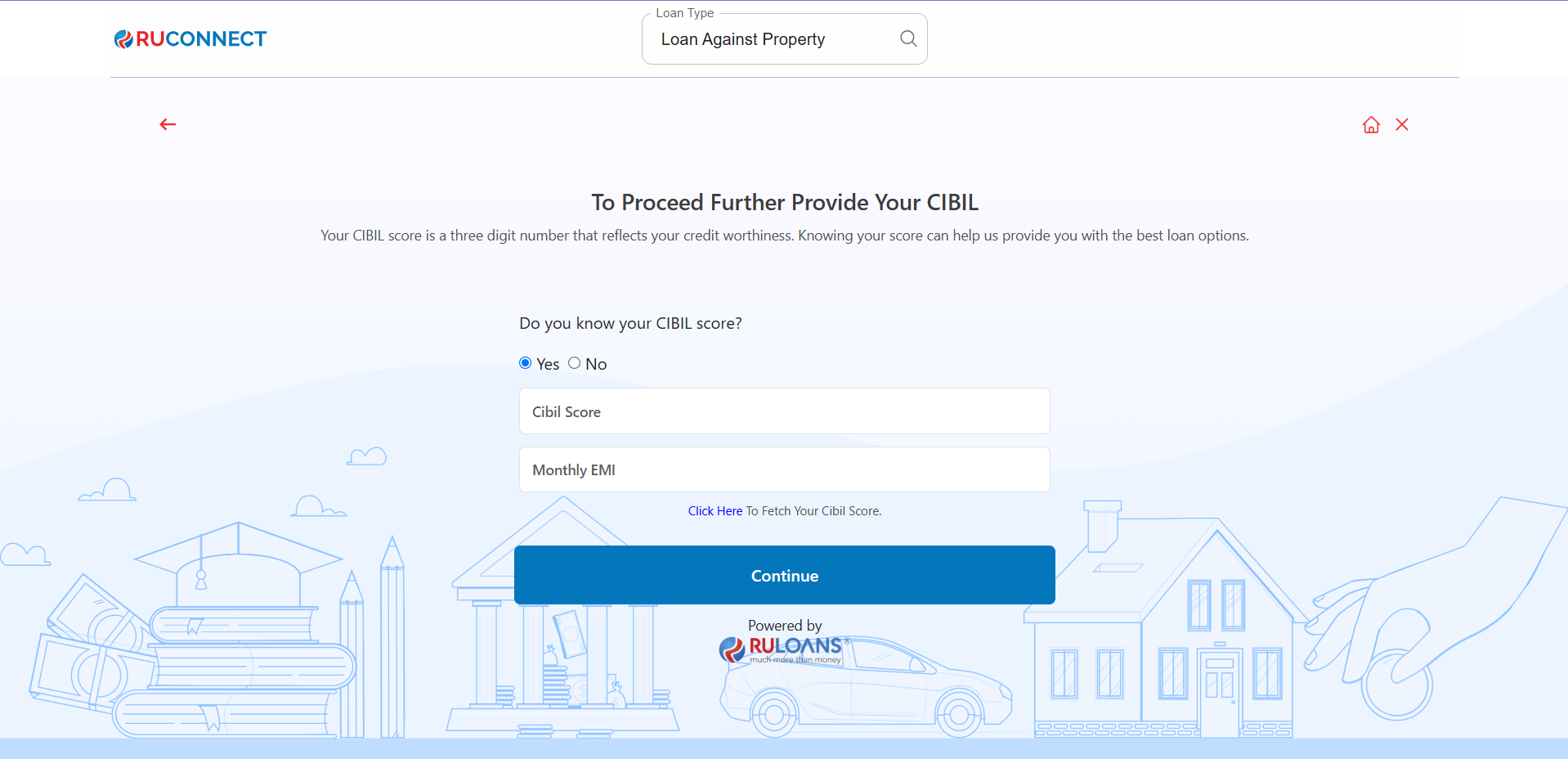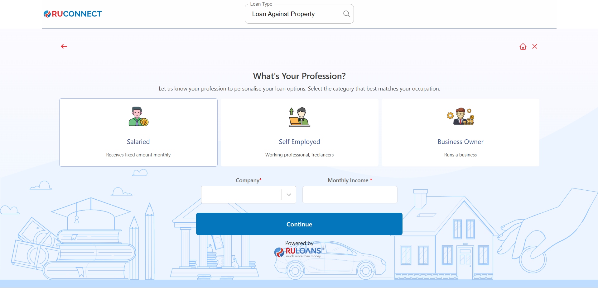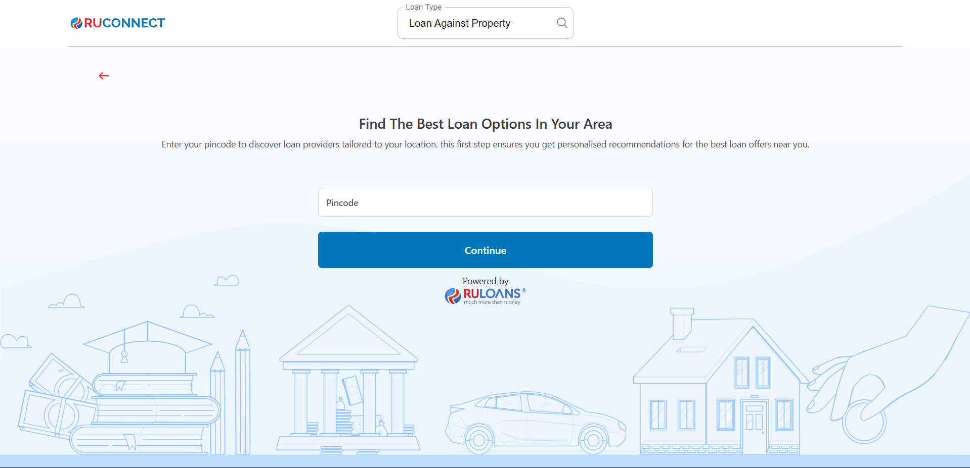 - Continue Button – A red button at the bottom that allows the user to proceed to the next step of the loan application process after all required details are filled.