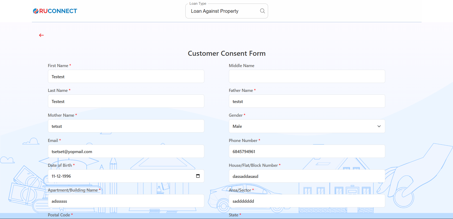 This step involves the borrower providing additional details required for processing their home loan application. The interface, as seen in the image, displays various fields capturing essential information related to the applicant’s financial and property details. Key Requirements:- Aadhaar Number – The borrower must input their Aadhaar number for identification and verification purposes.
