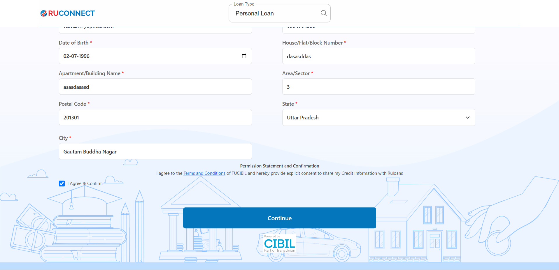 - Select checkboxes for Privacy Policy and Credit Information consent.