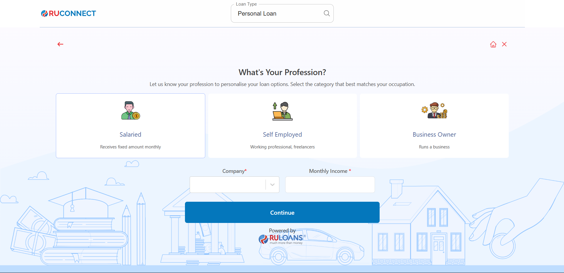 - Income Type: Choose between options like salaried, self-employed, etc.