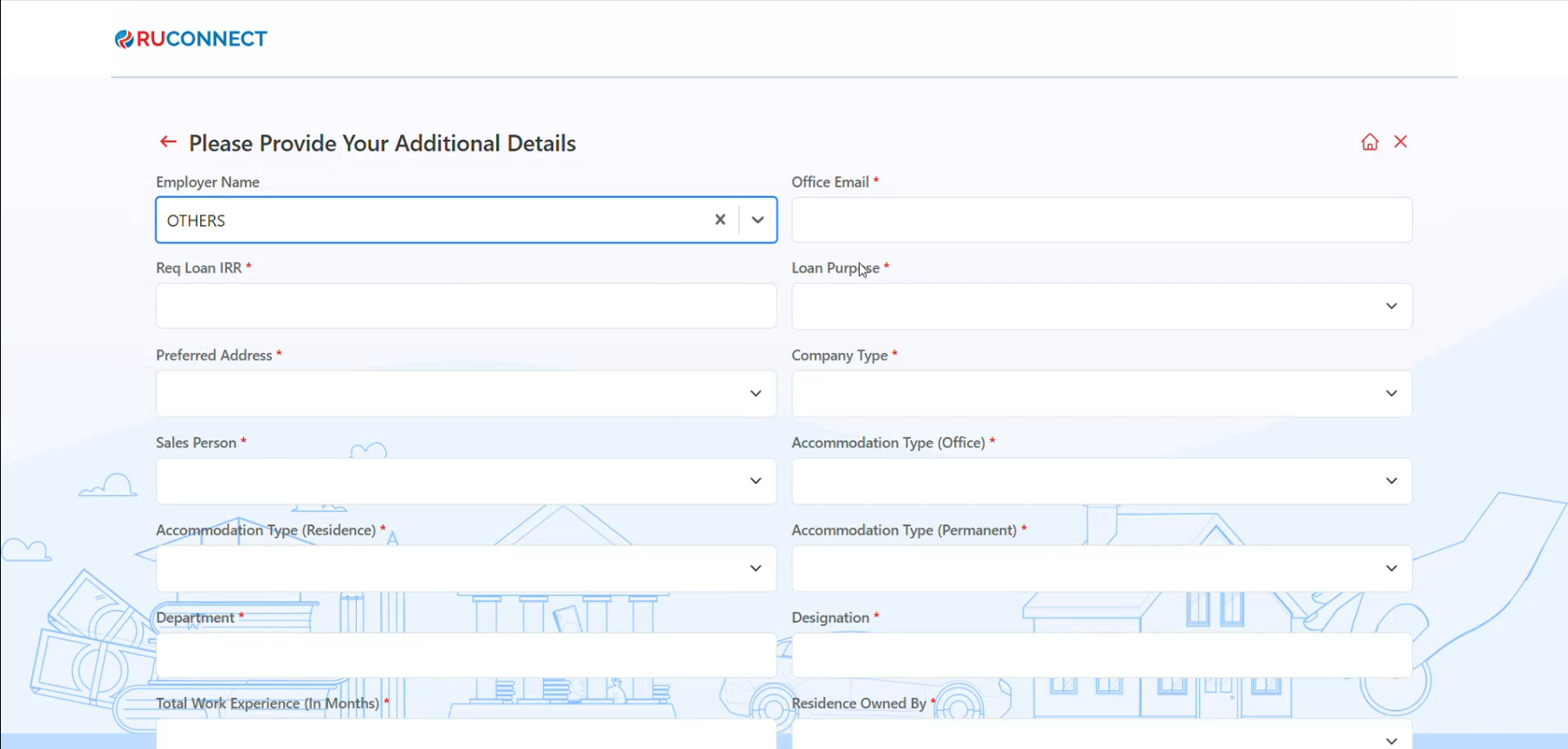 This step involves the borrower providing additional details required for processing their personal loan application.- Employer Name : The applicant selects employer name by entering the name and selects from the drop-down.