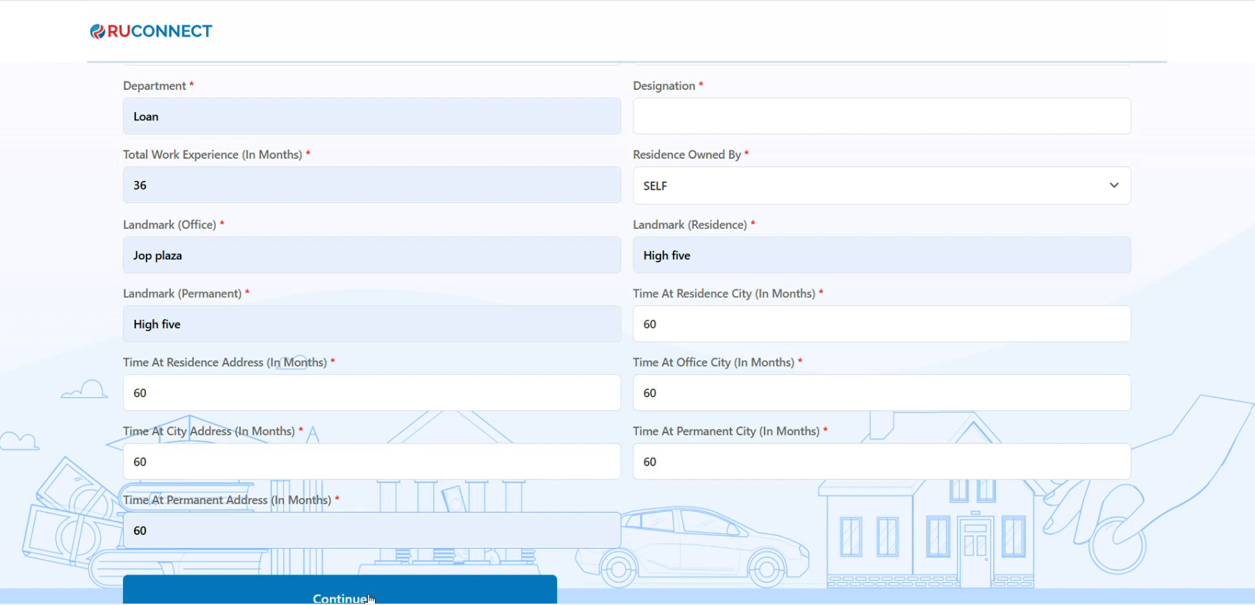 - Time At Residence Address In (Months) : The applicant needs to enter their residing time period in the address.