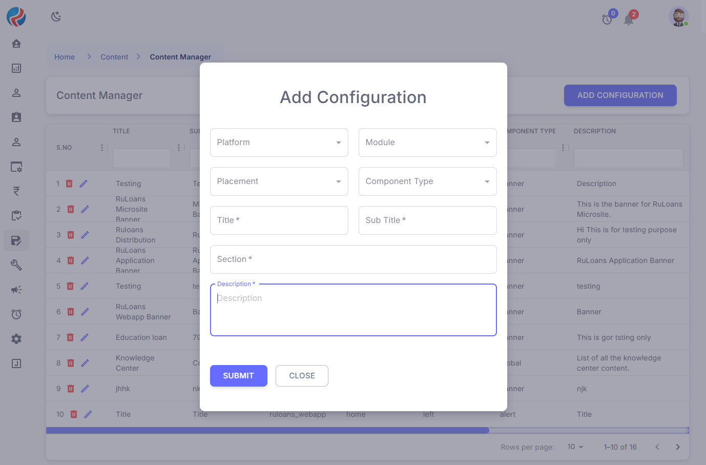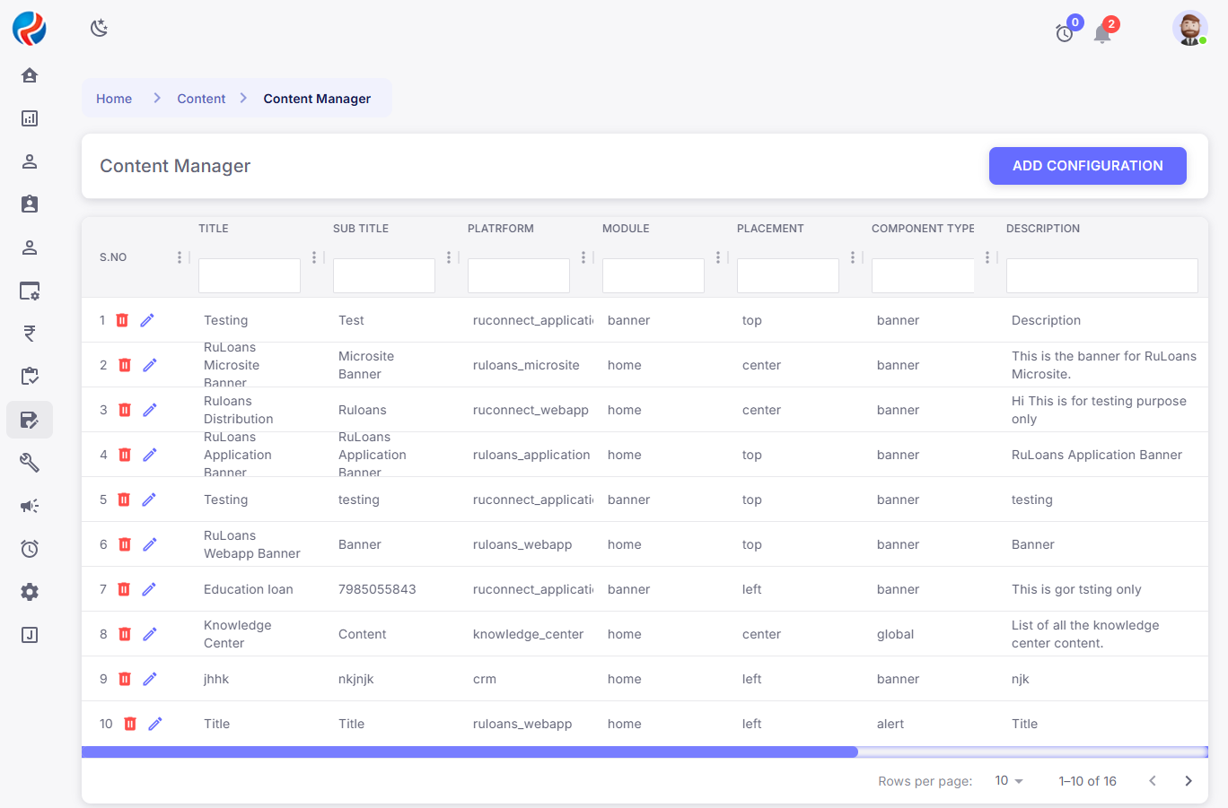 The CRM system provides a comprehensive way to manage and organize content effectively. This documentation serves as a guide to navigating the Content Manager, adding new configuration entries, editing existing entries, and managing media files within the system.Accessing the Content Manager