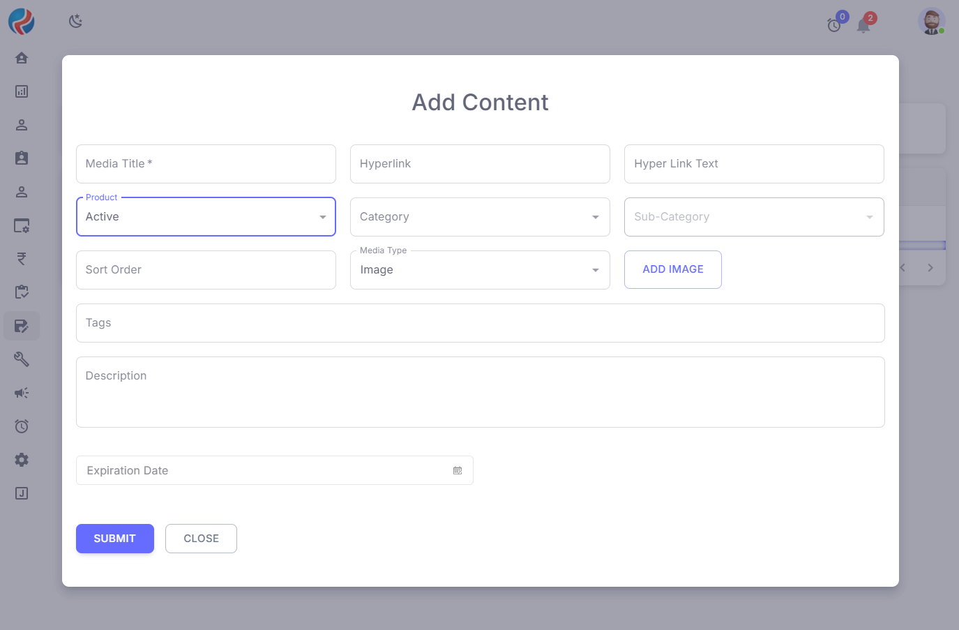 - The Add Content Pop-Up appears, prompting users to provide essential information: