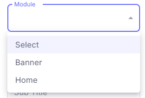 - Module (Dropdown for selecting the module related to the content i.e. Banner , Home )