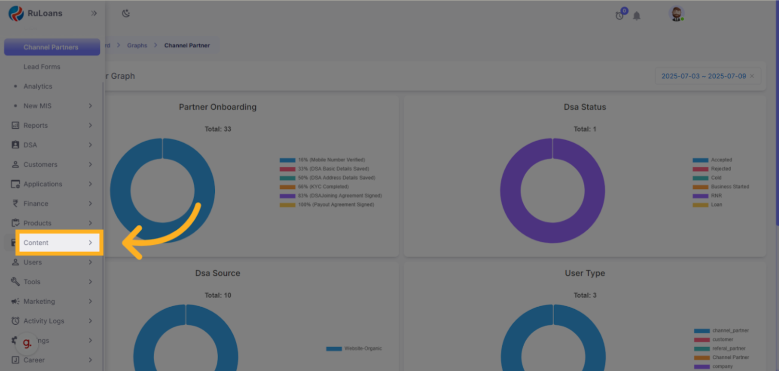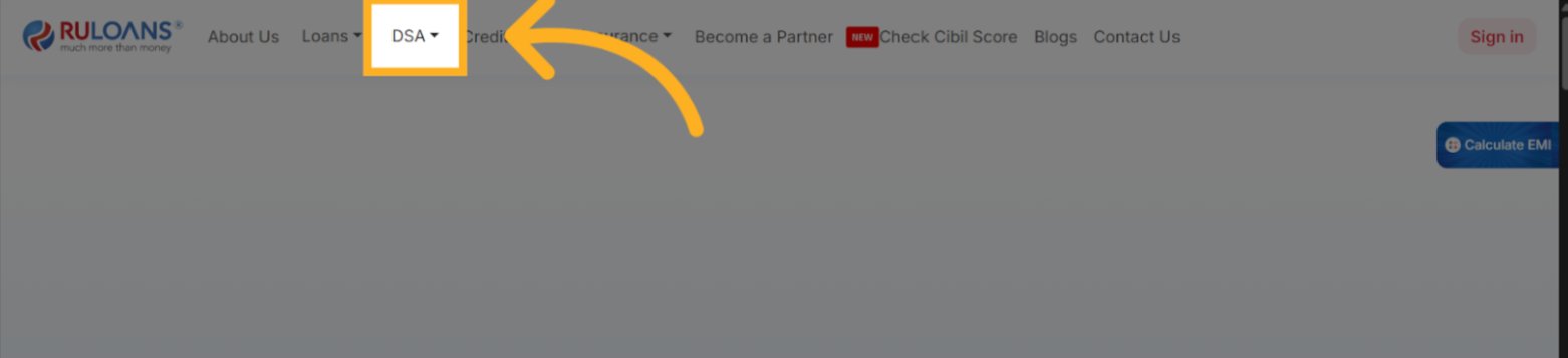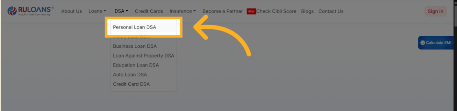 - Click on DSA, and then Personal Loan DSA. The User will be redirected to the Personal Loan DSA page