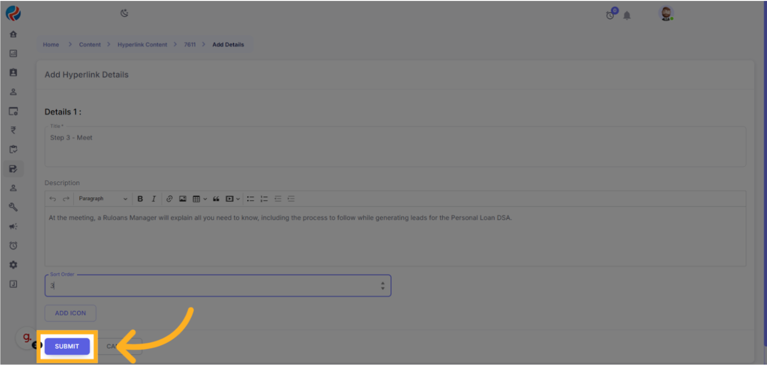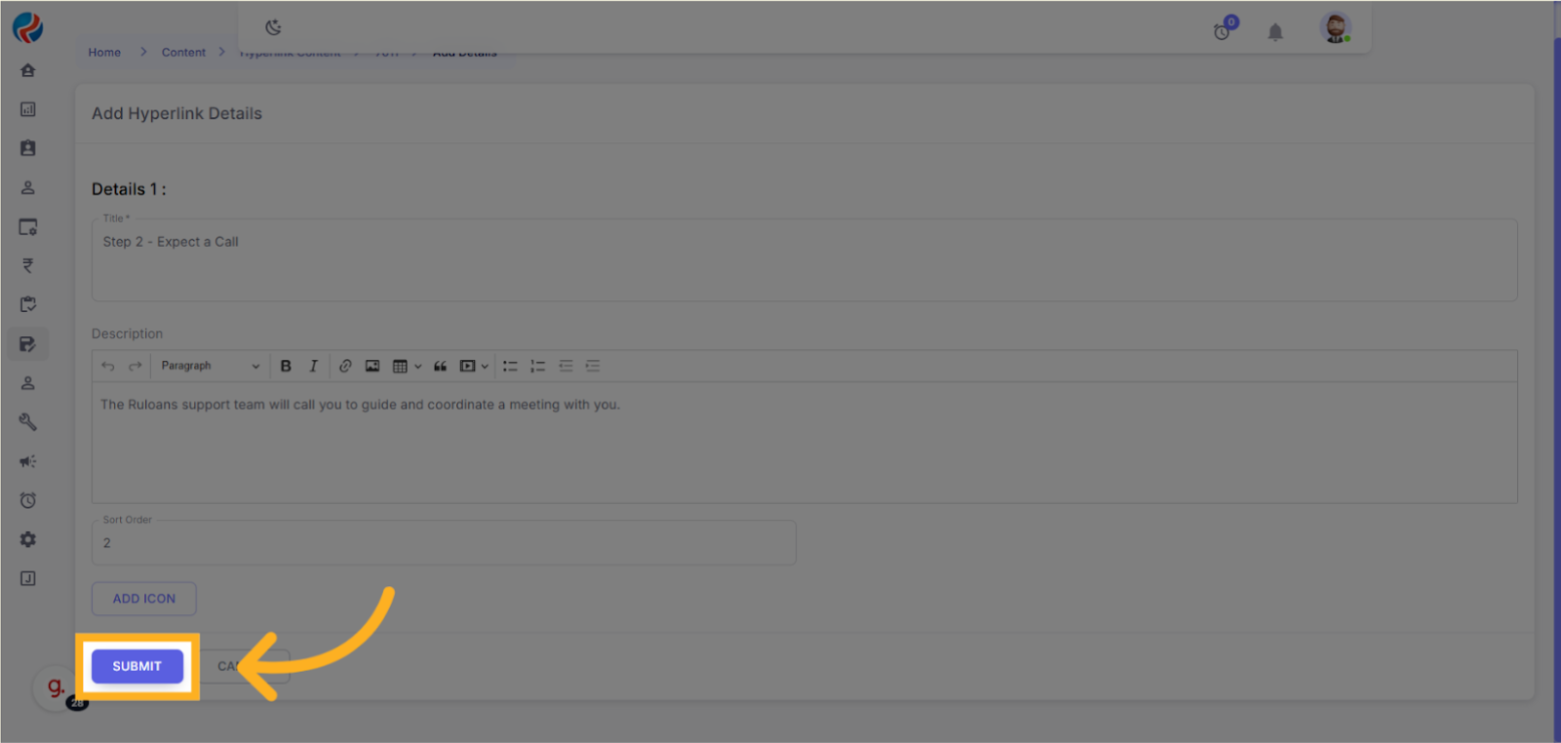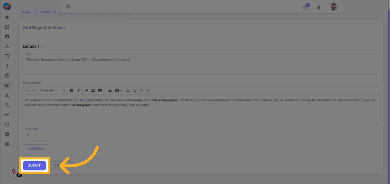 - Click on Submit button, you will be redirected back to the hyperlink content page, and we’re done with the CRM process.