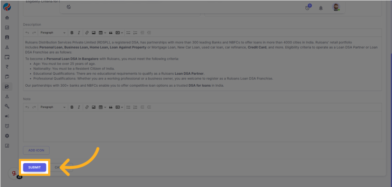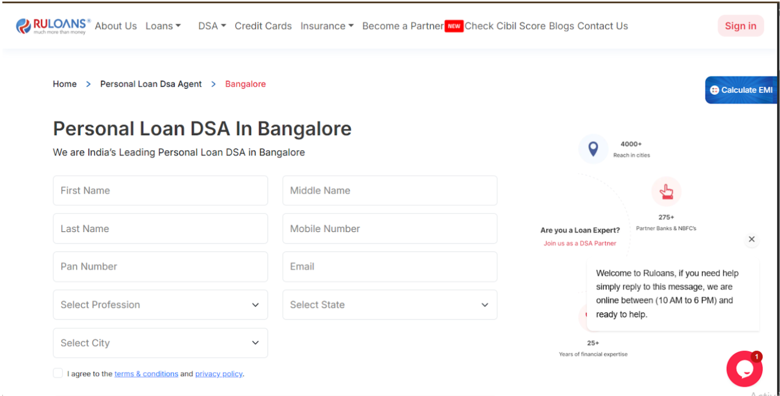 - Loan Type: Choose the appropriate loan DSA category, such as Personal Loan DSA or Home Loan DSA.