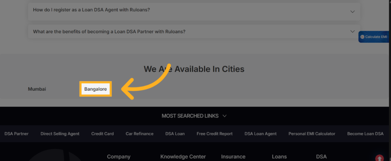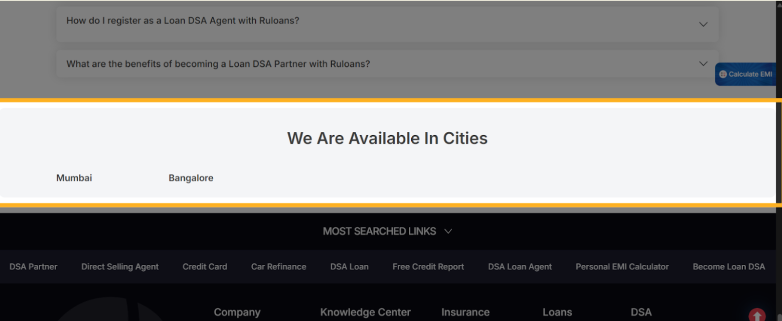- Once the content for a particular city has been added, that city will automatically appear on the respective Loan DSA page on the website. For instance, if content for Mumbai is added under Personal Loan DSA, Mumbai will start displaying as an available location on the Personal Loan DSA page.
