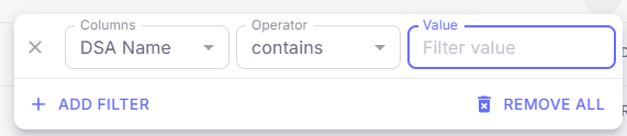 - Column Selector – Choose the column you want to filter. (you can add multiple at one time)
