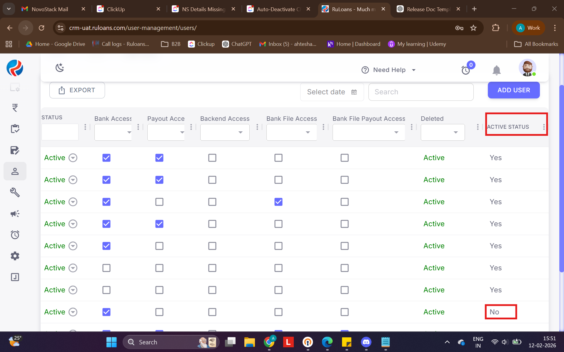Only authorized roles can see and use the activation option.User List – Active Status Indicator