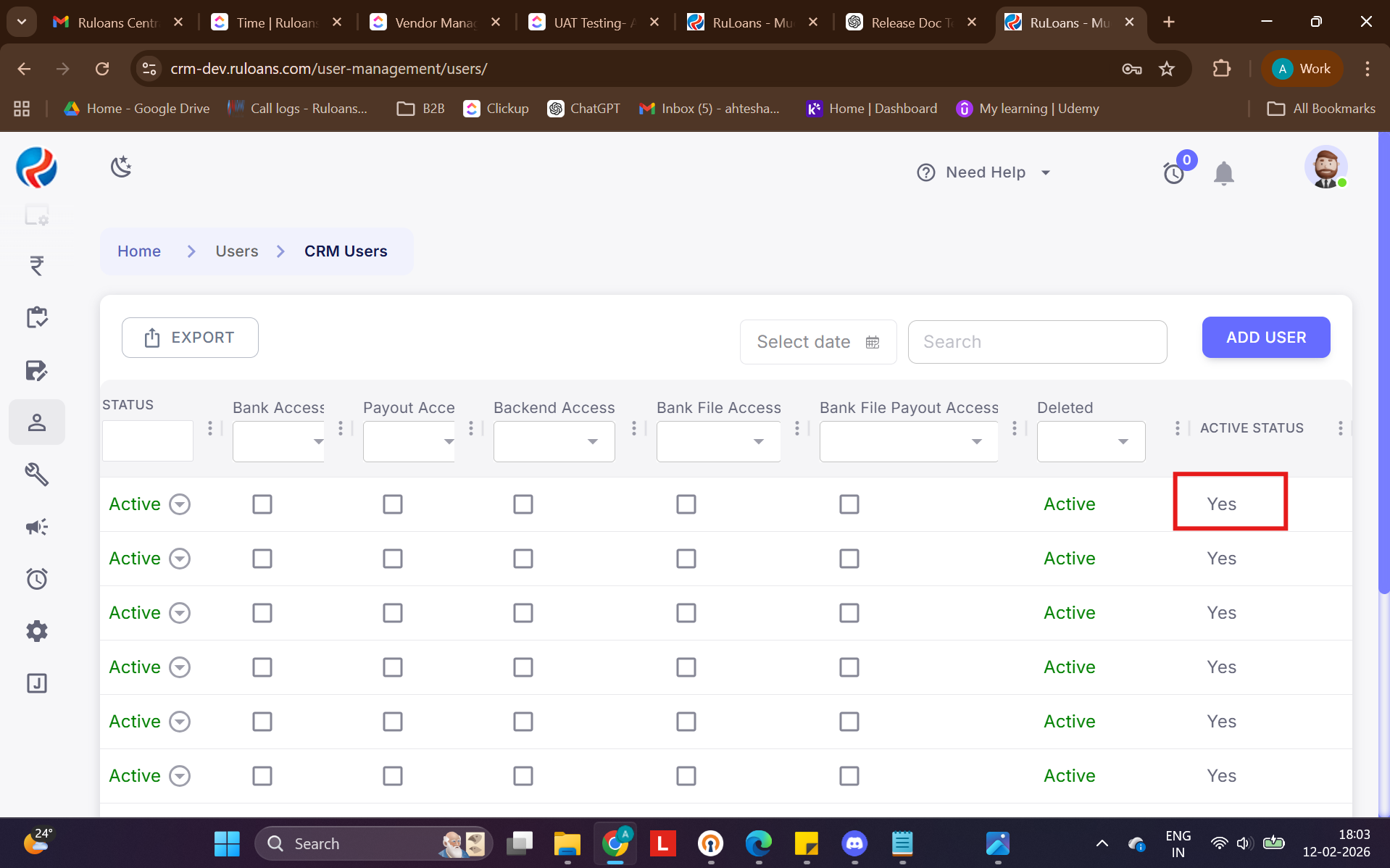 A new Active Status column is available in the CRM Users list.
