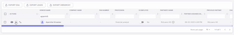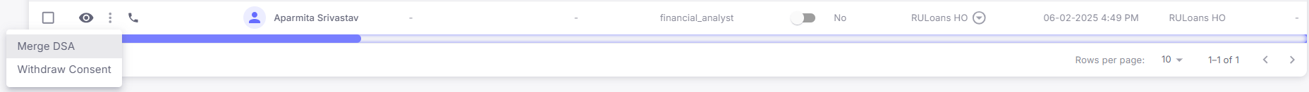 - Click on the three dots in the Actions column next to the DSA’s name.