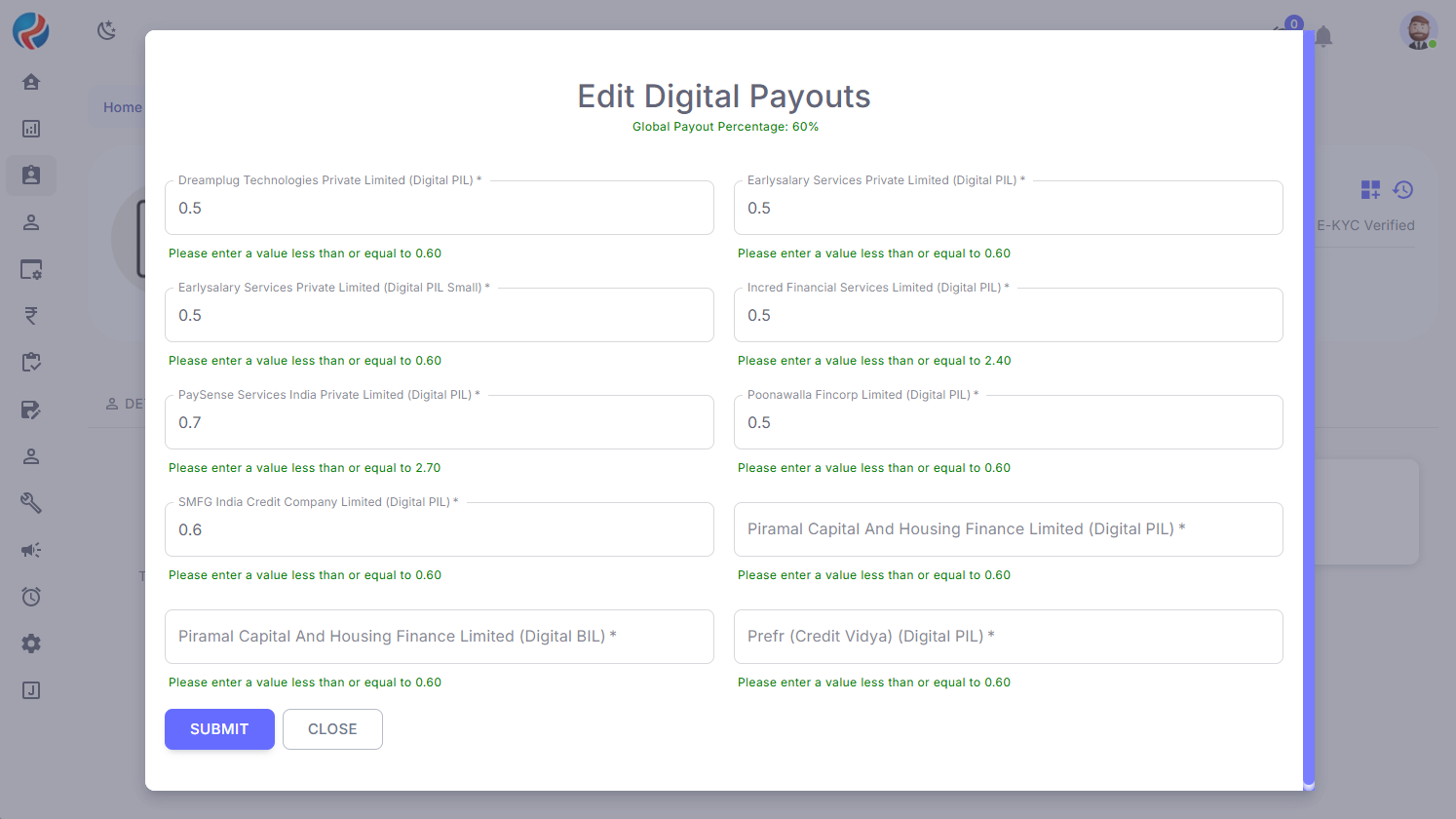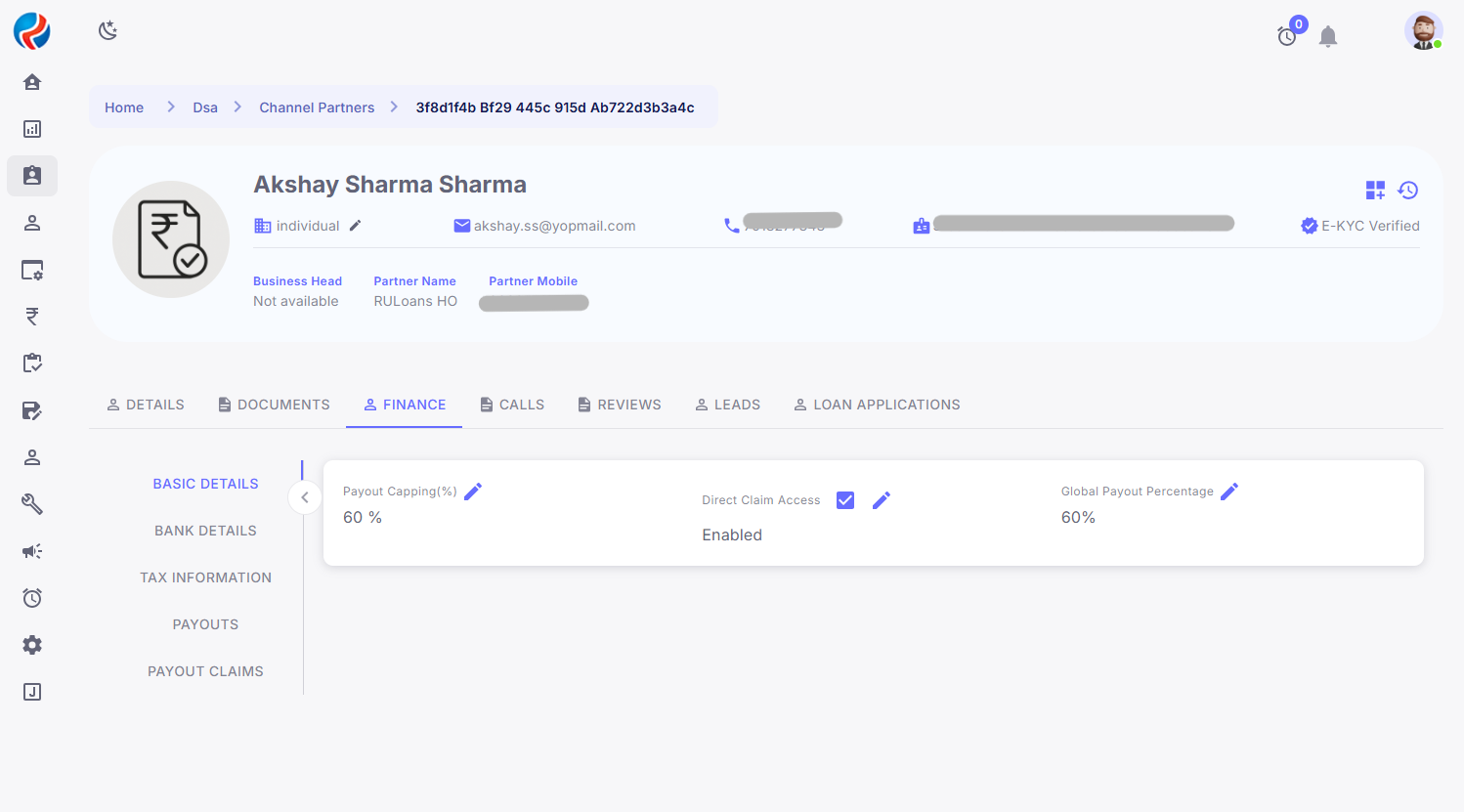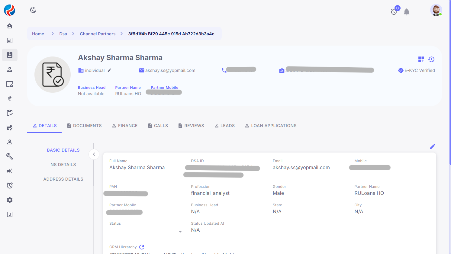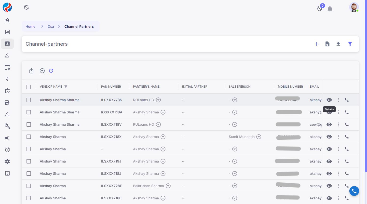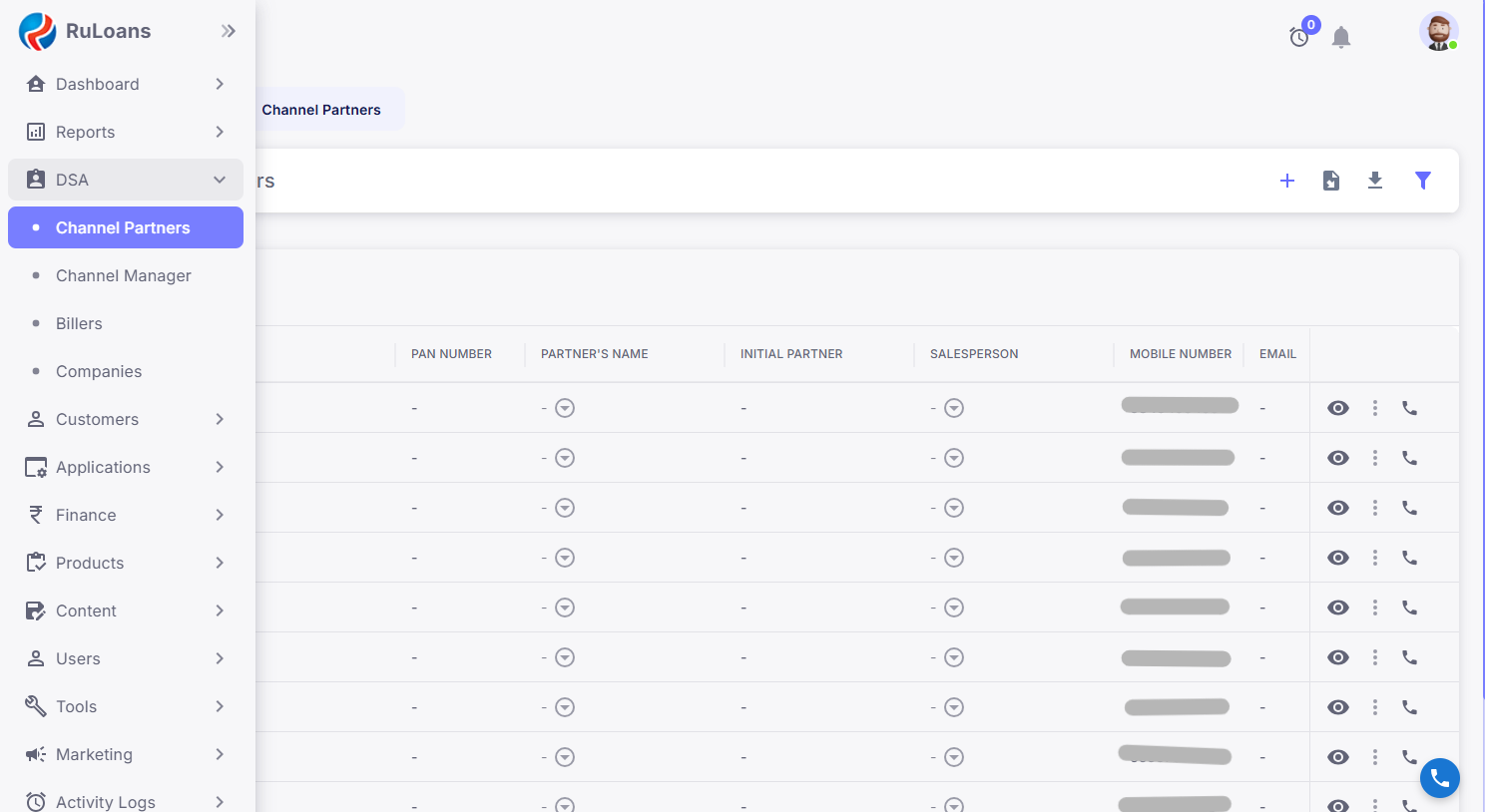 - Click on the hamburger menu (☰) and go to DSA > Channel Partner.