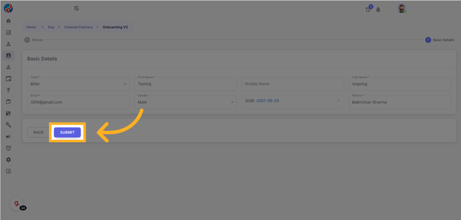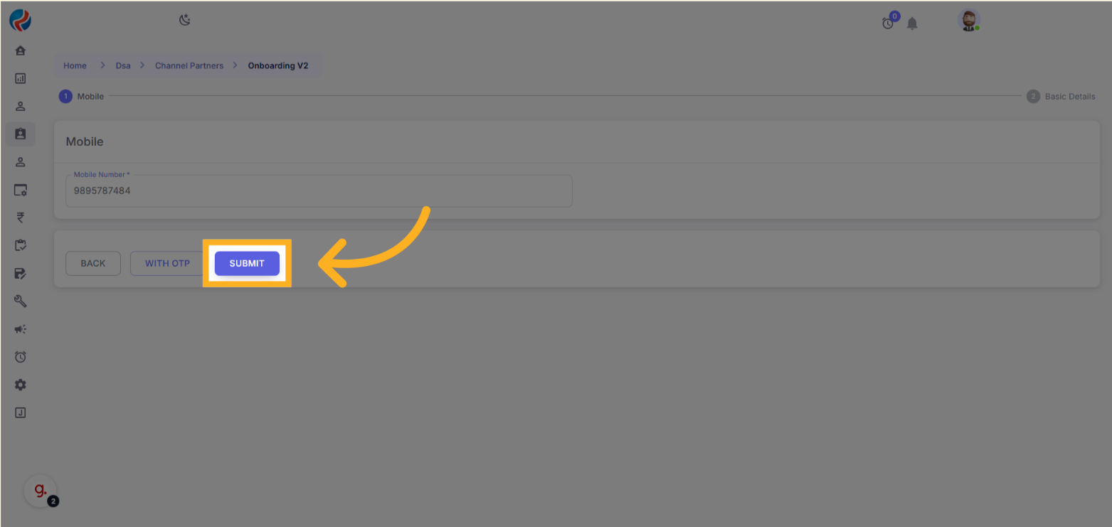 - Search by Mobile Number, Name, or any other onboarding detail.