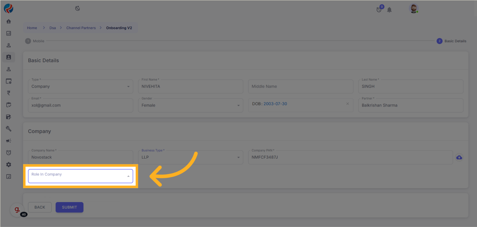 - Click on the “Role in Company” dropdown and make the correct selection.