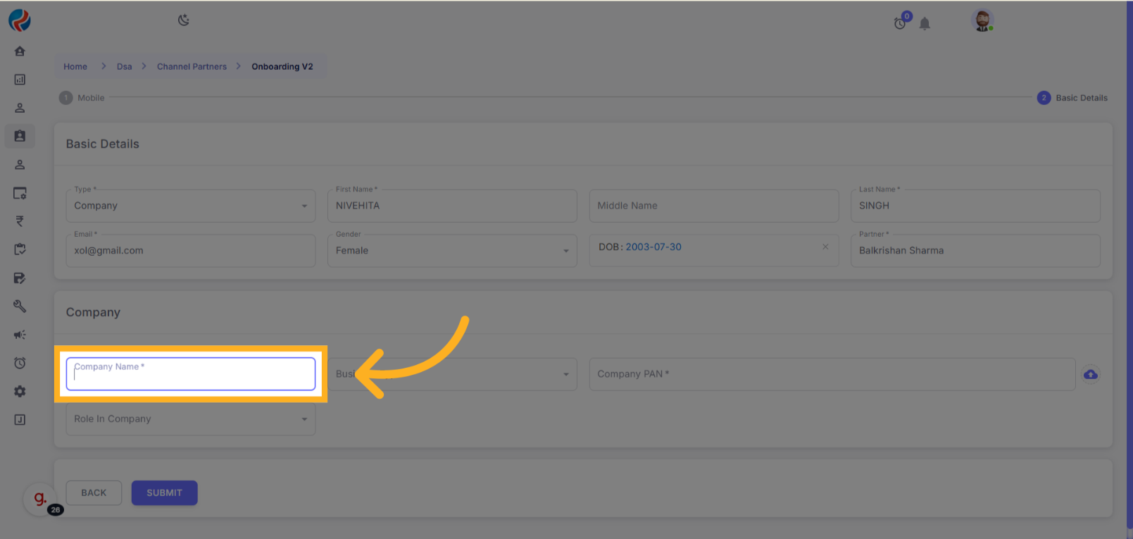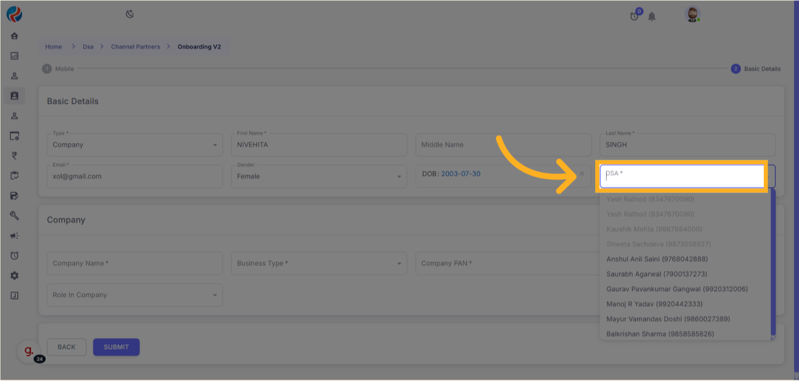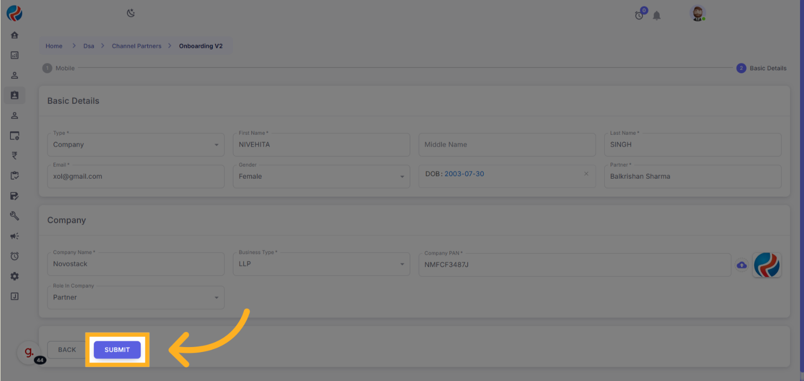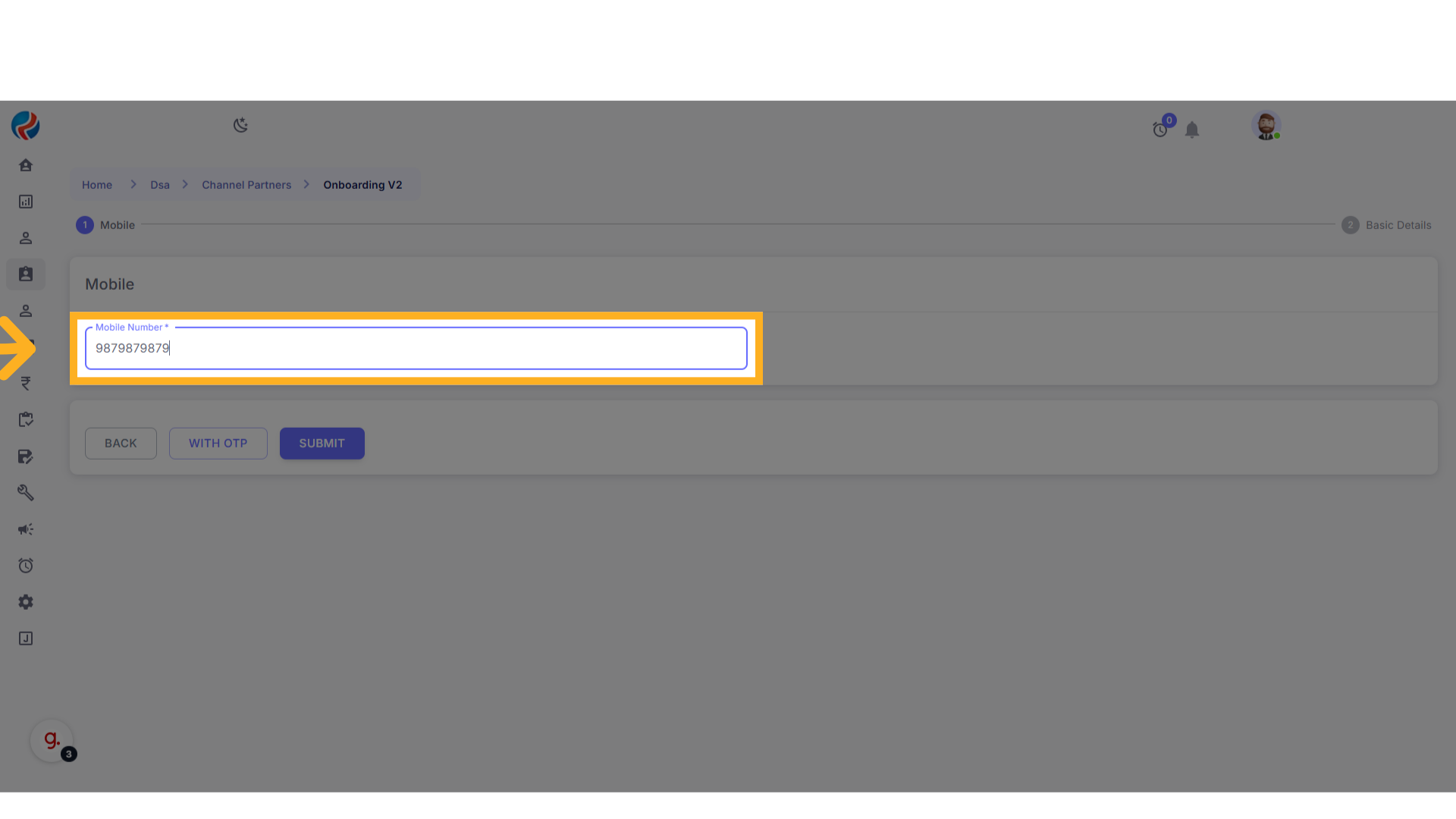 - Search by Mobile Number, Name, or any other onboarding detail.
