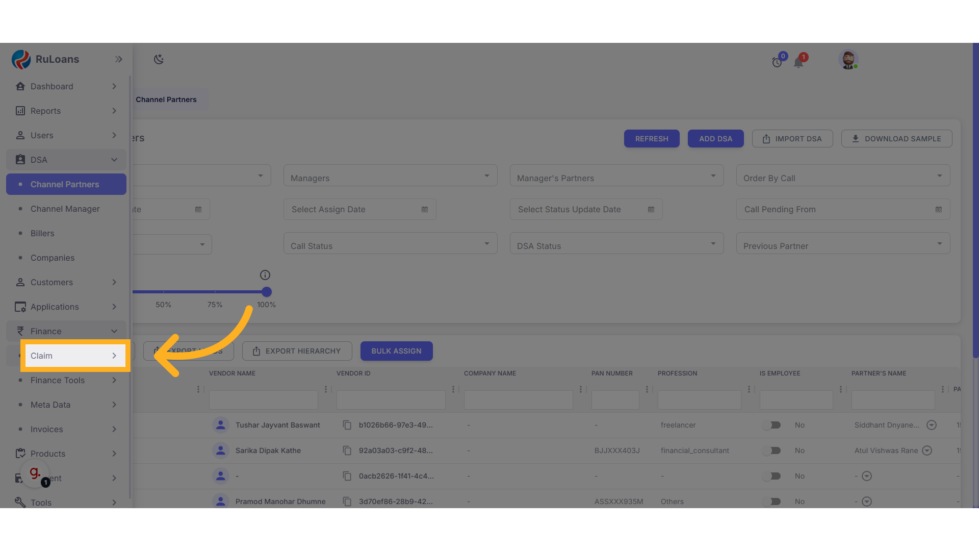 - Under the Finance section, click on Claim.