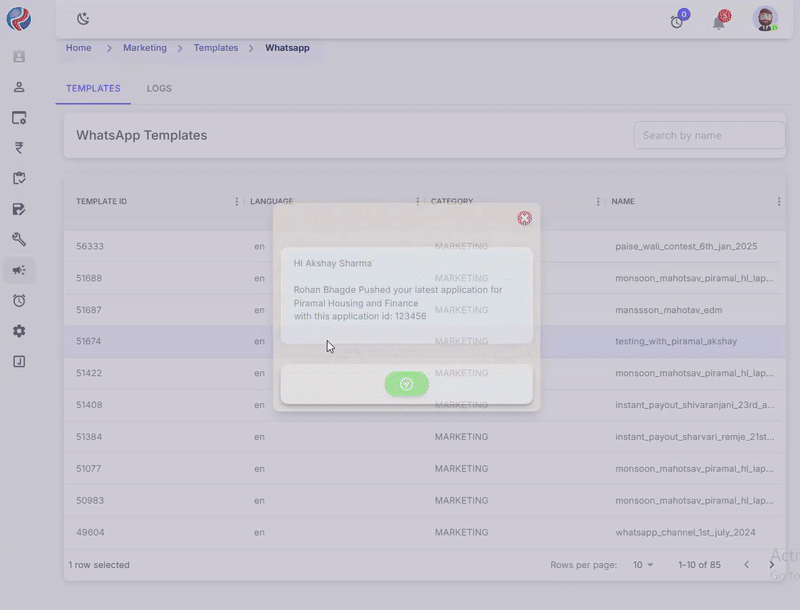 A Preview Message will appear, showing how the message will look on WhatsApp.