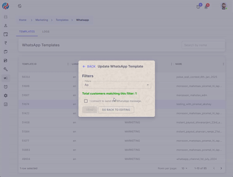 You are all set! Your WhatsApp messages have been sent to the selected recipients .